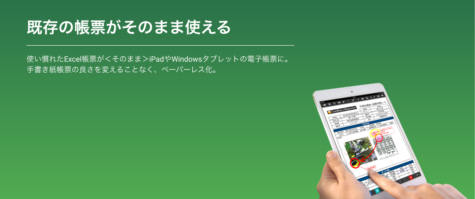 - 日頃使い慣れた紙やExcel帳票が、そのままiPadの電子帳票に。