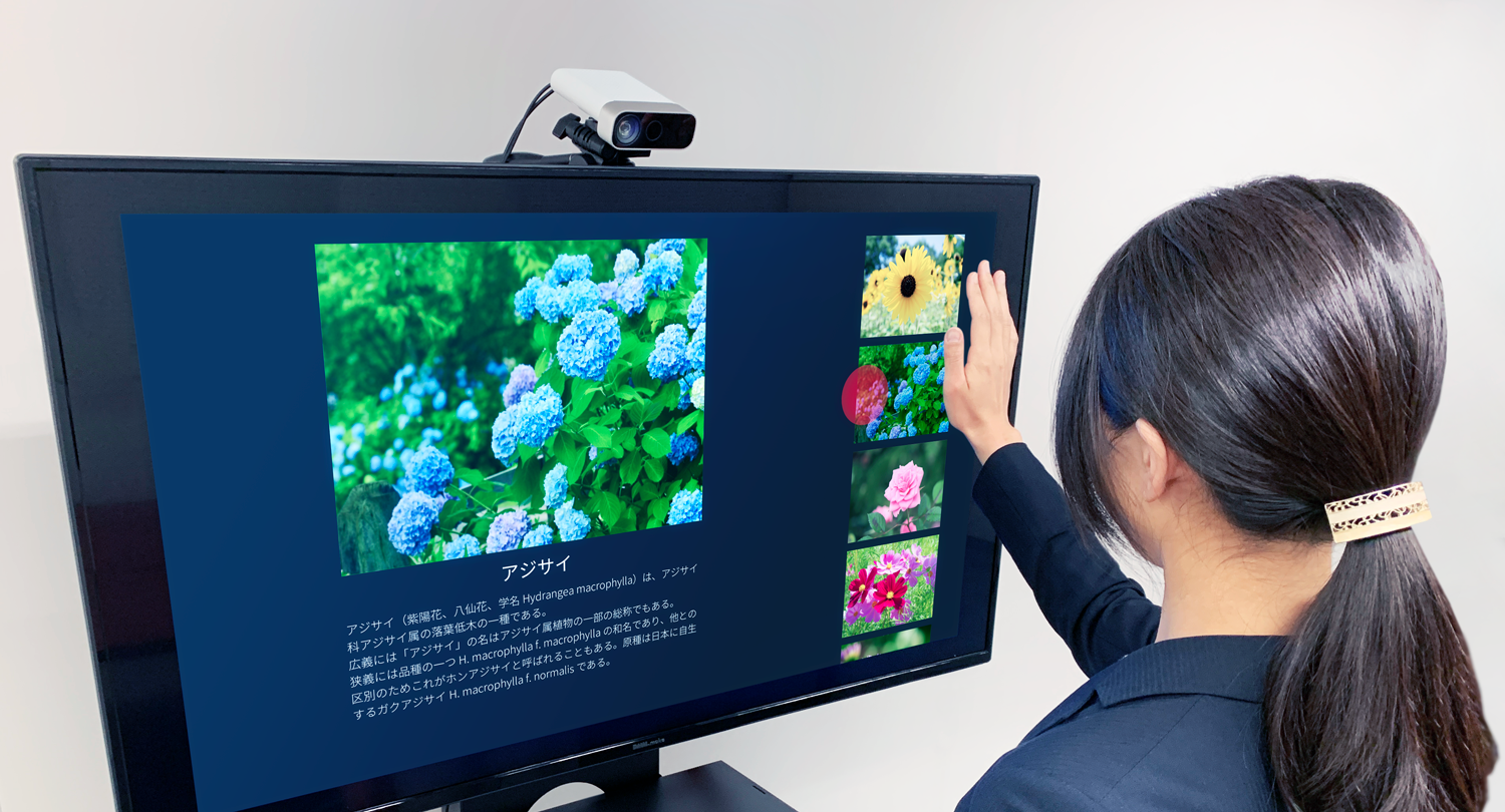 画面に手をかざし、グーとパーのジェスチャーのみで簡単に操作できます。