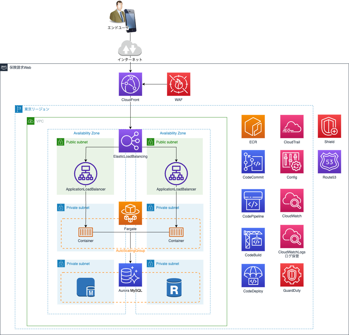 窓口での保険金精算に対応していない動物病院の場合は、保険契約者自身が後日、保険金請求を行う必要があります。この請求方法として、2024年5月にオンラインでの申請の対応を開始しました。システムは可用性を重視してAWSで構築しています。